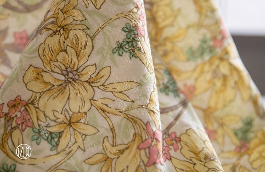 お母さんの顔をパッと華やげてくれる春らしいイエローカラーの花柄は、透け感を気にすることなく、下着をつけずに1枚でもご着用いただけます。