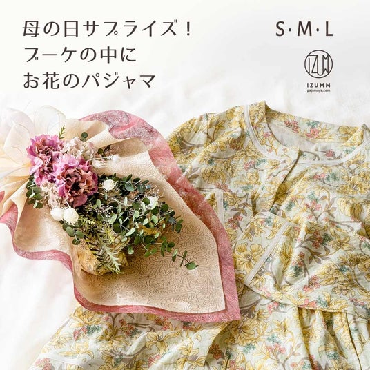 オリジナルパジャマブランド「パジャマ屋IZUMM」(https://www.pajamaya.com/)を運営する株式会社フレックス(代表:熊坂泉、本社:神奈川県相模原市)は、今までの母の日とは全く違うサプライズを届けられる、ブーケラッピング付きの花くるみパジャマを3種販売開始♪華やかな黄色の花に包まれた、柔らかな肌心地の花くるみパジャマに、オリジナルのブーケを組み合わせたギフトセットです。「今年の母の日は何にしよう?」とお悩みの方必見!”花束”と”パジャマ”で「嬉しさ2倍」に!母の日にいつもと違う感動をプレゼントするのはいかがでしょうか。