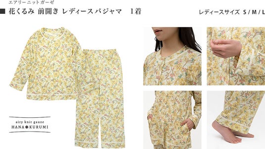 お母さんのお顔をパッと明るく華やかにしてくれる黄色の花柄デザイン。そして、赤ちゃんの肌着にも使われる優しい素材で作られた、綿100%・2重仕立てのニットガーゼ「花くるみ」シリーズのパジャマ・ワンピースが、母の日に合わせてブーケラッピング付きのギフトセットとして販売開始しました。花束の裏側にパジャマを包み込んだ当店オリジナルの『パジャマブーケ(R)︎』ブーケを解くと中からパジャマが出てくる仕様で、1度で2度の驚きを演出できます♪