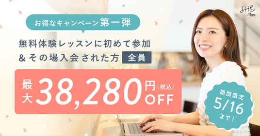 学ぶから働くまでをサポートする女性向けキャリアスクール「SHElikes(シーライクス)」を運営するSHE株式会社(所在地:東京都港区、代表取締役CEO/CCO:福田恵里、以下SHE)は、大人の学び直しを応援する、5月限定の「今踏み出そう入会キャンペーン」を開催します。
