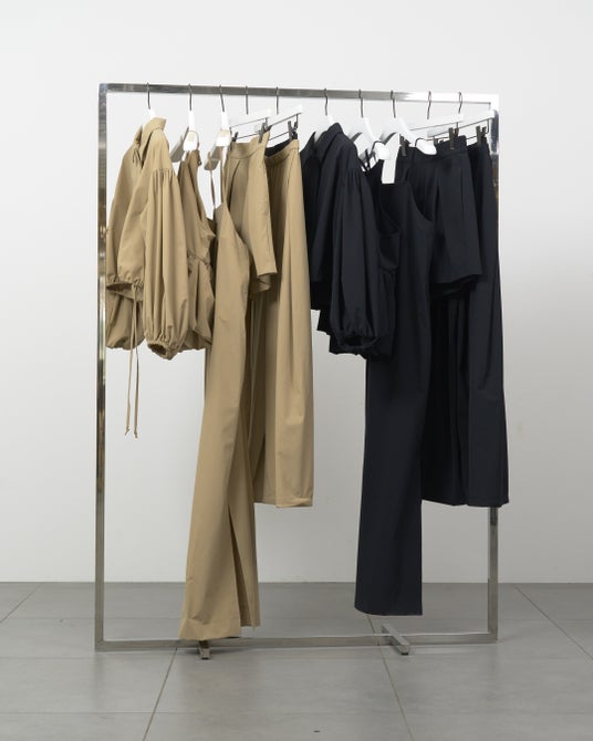 シャツジャケット¥26,400、バルーンヘムトップス¥26,400、キャミソールドレス¥29,700、ショートパンツ¥20,900、2WAYワイドパンツ¥26,400