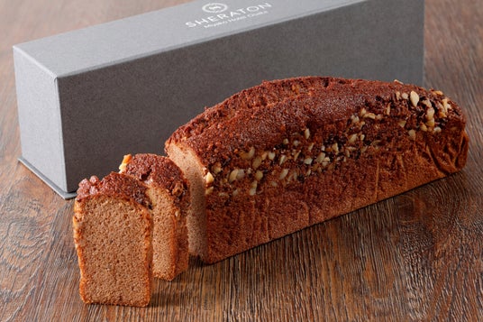 生地に焦がしバターとチョコレートパウダーを混ぜ込み焼き上げた、きめ細やかでしっとりとした食感のパウンドケーキ。マカダミアナッツの香ばしさと食感が楽しめます。