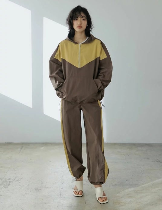 ラフな着こなしながらも、あえてセットアップにすることでスタイリッシュな印象に。