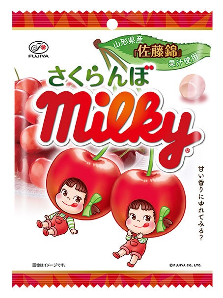 ・さくらんぼの大人気品種「佐藤錦」果汁の甘酸っぱい味わいと、ミルキーのやさしいミルク味を組み合わせたおいしさを楽しめる