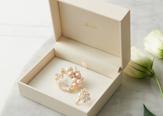 ブローチ左: No.389 エンシーナ 右:No.416 フラワーパールブローチデビュー!最初の一つにおすすめの「パールブローチ」入卒式や結婚式など、華やかな席でも活躍するパールを使用したブローチは、控えめな大きさのものを選べば普段使いもしやすい優れものです。一つ持っていれば、ファッションの幅をぐっと広げてくれます。