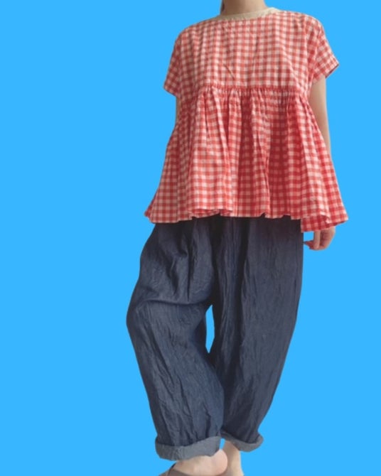 ギンガムチェックギャザートップス GrayCheck (Brand:Veritecoeur)