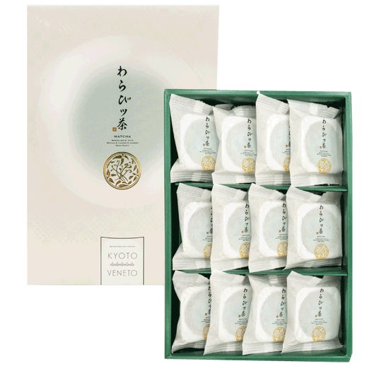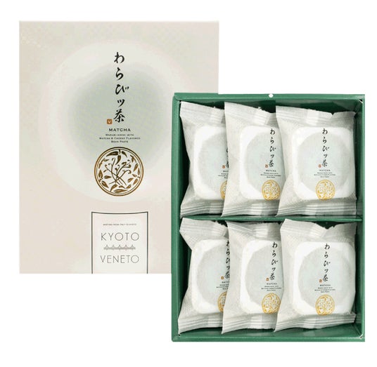 マスカルポーネチーズとカマンベールチーズをブレンドした抹茶餡を甘みのある もちもち食感のわらび餅で包み込みました。チーズと宇治抹茶、和洋それぞれの深みをお楽しみいただけます。