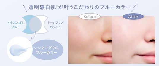 いいとこどりのブルーカラーが、お肌のくすみ・赤み・色ムラを補正※して透明感あふれる白肌※に。