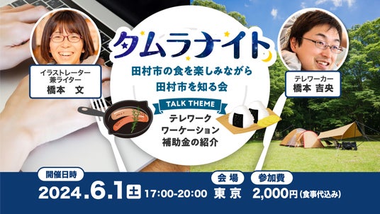 ゲストに「地方移住×テレワーク」を実現されているご夫婦をお迎えし、「テレワーク生活スタイル」や「移住前後の生活の違い」、「地方での子育て」などについてお話しいただきます。また、「夏休みに地方でテレワークやワーケーションをしてみたい」という方に向けて、田村市内でテレワークやワーケーションができる施設や補助金の紹介もあります。このイベントを機に、今夏のワークとバケーションの計画を立ててみませんか?