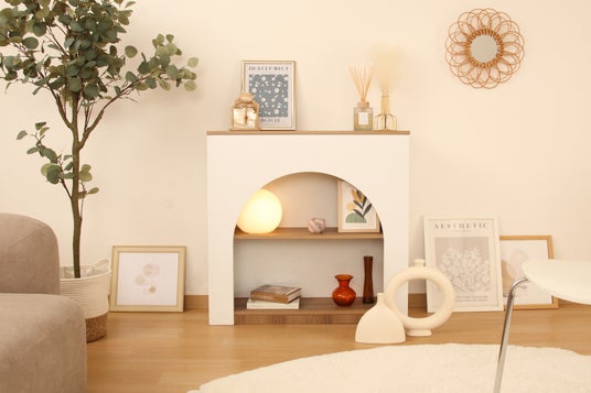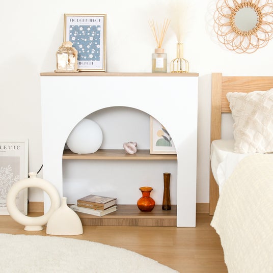 アーチ型のデザインが印象的なマントルピースは置くだけでお部屋をおしゃれに彩ってくれます。