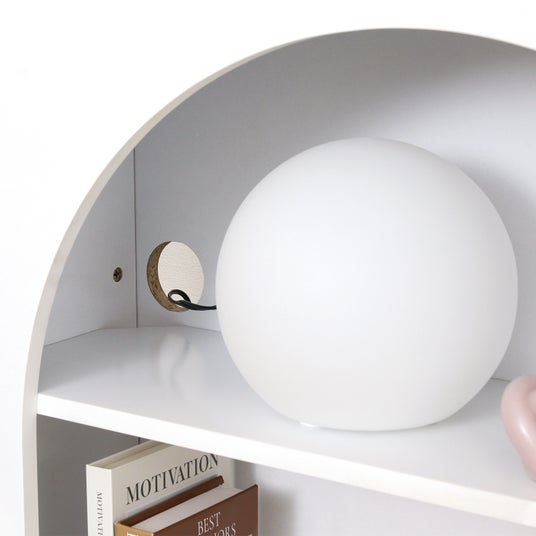 ■便利なコード穴付き棚の上段サイドにはコード穴がついているので、スタンドライトなどのコードもスッキリ。正面からは穴が見えないところもポイントです◎