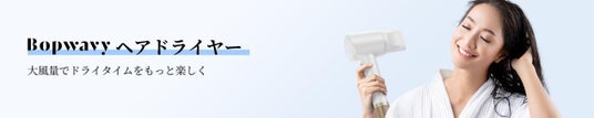 製品:「Bopwavy」マイナスイオンドライヤーは高速モーターが内蔵され、毎分120,000の高速回転を生成、パワフルな風を送る同時に髪に水分を補給します。