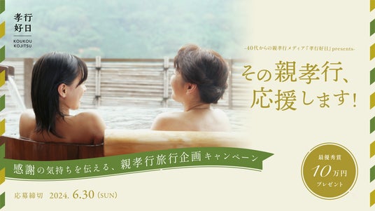 「大切な人を、永遠に大切にできる世界。」をビジョンに掲げる株式会社加登(本社:大阪府大阪市 代表取締役社長:加登隆太)は、自社が立ち上げた40歳からの親孝行サイト『孝行好日(こうこうこうじつ)』にて、「感謝の気持ちを伝える、親孝行旅行企画キャンペーン」の開催を発表しました。