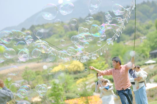 しゃぼん男爵ショー大きな空の下でしゃぼん玉を飛ばそう!園内を見渡すグリーンヒルの丘から、キラキラと輝く幻想的なしゃぼん玉のショーをお楽しみください。