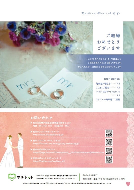 このことを記念して、【柏市オリジナルデザインの婚姻届】を作成しました。