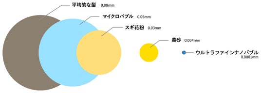 ウルトラファインナノバブルとは、1μm以下の気泡。通常の水道水に含まれる気泡は500~2000μmで、約8秒で水面に浮上し破裂してしまいますが、ウルトラファインナノバブルほど小さい気泡は、破裂することなく、水中に2年以上残存します。そのため、通常の水道水と比較して洗浄力7倍、保湿力2倍以上という驚くべき力を発揮すると言われています。