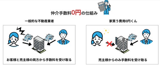 中古住宅などを買う際、不動産業者はお客様と売主様から手数料をいただくケースが多いのが一般的です。しかし、「家買う費用0円くん」を利用いただければ負担の大きい仲介手数料を0円にすることができるのです。「どうしてなのか?」。疑問に思う人は当然いると思います。「家買う費用0円くん」の場合、売主様からのみ手数料をいただくため、お客様からの仲介手数料は0円で済むのです。浮いた費用は家具や家電の購入に使うことができます。もちろん、物件探しもお手伝いできますし、他社の物件でも契約前であれば対応は可能です。ぜひ、ご相談いただければと思います。