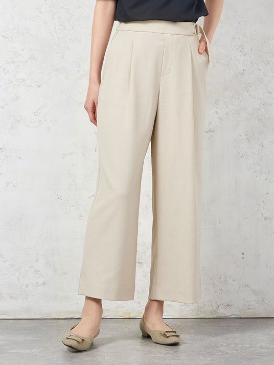 4.選べるテーパードしシルエット&ウエストアクセントベルト付きワイドシルエットの2種リネンライクテーパードパンツ/ワイドパンツ