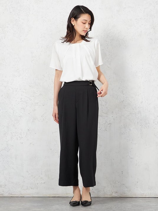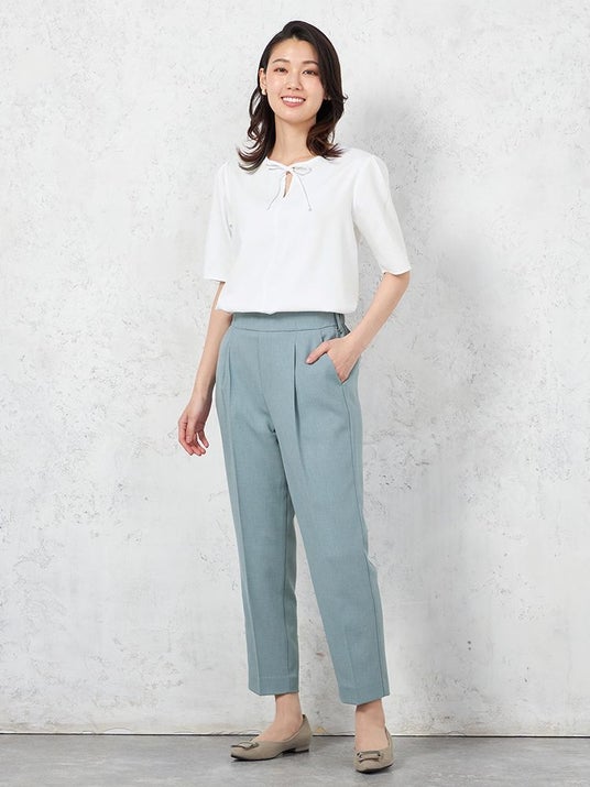 あたたかくなる季節のオフィススタイルにマッチする涼しげでさらっとした麻調の肌触りと軽い着心地のパンツが今年も登場。選べるワイドとテーパードのシルエットで好みに合わせたスタイリングをお楽しみいただけます。シーズンムードを楽しめる軽やかカラーとベーシックなブラックの展開で、夏場のオフィススタイリングの定番パンツとしてワードローブに取り入れていただける一着です。ジャケットオンでオフィスカジュアルスタイルからTシャツやブラウスと合わせたきれいめカジュアルスタイルまで幅広いコーディネートに対応可能なアイテムです。