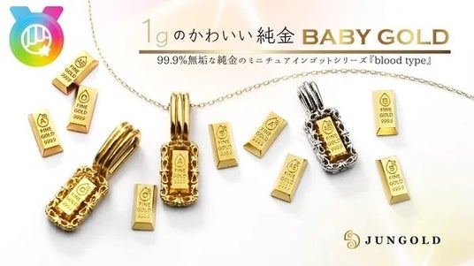 「純金で心躍る体験」をテーマに資産価値のある純金の新しいアイデアに挑戦している株式会社RAIN(本社:東京都台東区雷門、代表:石川 正道)は、「資産価値+心躍る体験」を提供する純金ブランドJUNGOLDから【【1gのかわいい純金【BABYGOLD】★新作は「血液型」シリーズ】プロジェクトをMakuakeにて5月10日(金)からスタートしました。24,800円(税込)。