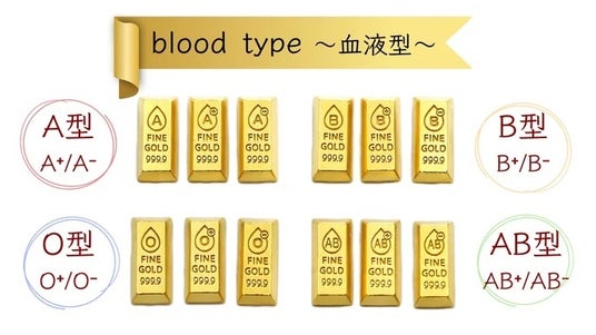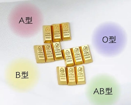 貴重な素材「純度99.9%の純金」が、ミニチュアサイズのかわいいインゴットになったBABYGOLD。今回は血液型をモチーフにしました。