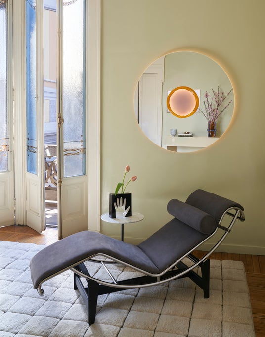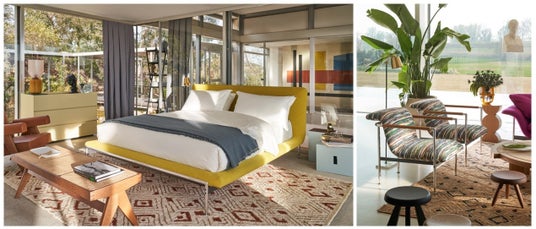 Cassina LABの研究により、このベッドはウェルビーイングをサポートする機能性を備え、ヘッドボードのパッディングには衛生的で無害なリサイクル素材であるSoundfil(R)吸音パネルを採用し、近くの振動音を制限して減少させることが可能です。ESOSOFT(エゾソフト)アームチェアは、まるでフレームの上に浮いているかのような、ソフトなパッディング入りのシェルがファブリックで張られており、独特のしなやかなデザインで広々とした快適な座り心地を実現しています。背もたれの曲線は、その細長い構造体を包み込むように、カジュアルで軽快な支えとなります。