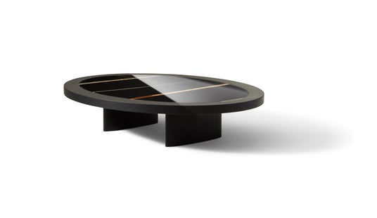 TABLE MONTA(ターブル・モンタ)の洗練されたデザインはカッシーナの木工技術の証であり、楕円形の2本の脚で構成された構造と楕円形の天板の両方に表れています。流れるようなラインが特徴的な天板は、8つの対称的なパーツで構成された外側のリングが同社の精巧な技術によって組み立てられ、大理石の天板を縁取っています。