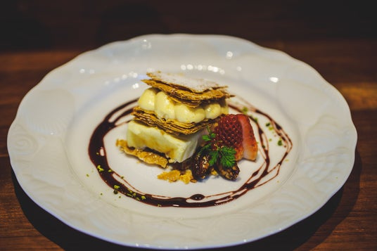 本品ではロンネフェルトの紅茶とのマリアージュを考え、自家製の甘さ控えめなカスタードクリームに、甘酸っぱい赤ワインソースが添えられています。しっかりとした乳成分の旨味のミルフィーユを、複雑で奥行きの深いアイリッシュモルトが洗い流す、爽快感と体の奥まで響く多幸感。