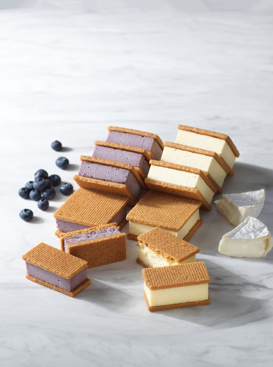 <ブルーベリー> オーストラリア産クリームチーズをベースにしたブルーベリーベイクドチーズケーキをしっとりとしたサブレでサンド。