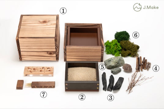 箱庭は、ひとつのセットでお好きなパーツを使用しながら、さまざまなデザインの箱庭に仕上げることができます。