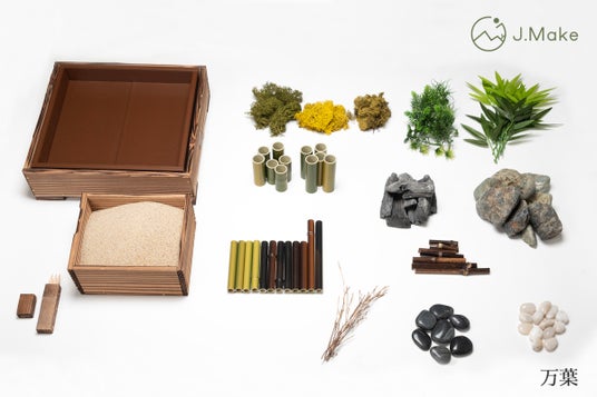 訪日外国人の方へ、日本の素晴らしさと日本ならではの和の素材の素晴らしさを体験し、知っていただきたいという思いから開発した箱庭。自由な発想で作る箱庭は、つくる楽しさ、飾る楽しさ両方を味わっていただけます。サステナブルな素材をふんだんに使った箱庭を、玉手箱風に仕上げました。主にホテル宿泊者の方向けに、「和」の体験プログラムをご提案いたします。