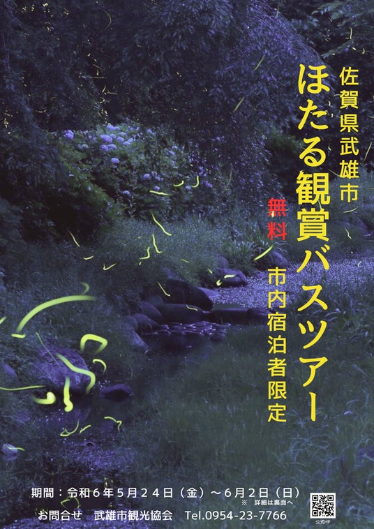 チラシのQRコードもしくは、武雄市観光協会ホームぺージ「お知らせ」よりお申し込みできます。注)定員に達した場合、終了いたします。