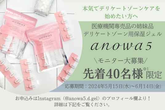 DKSHマーケットエクスパンションサービスジャパン株式会社(本社:東京都港区、代表取締役社長:林 靖夫)は、販売代理店をつとめる株式会社アノワのデリケートゾーン用保湿ジェル「anowa5 Dジェル」(https://anowa-care.jp/)のモニター40名様を募集いたします。