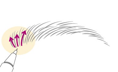 Step.01 筆を立てて眉尻を描き足す眉尻の毛の足りない部分に 、筆を立てて毛を描き足していきます。