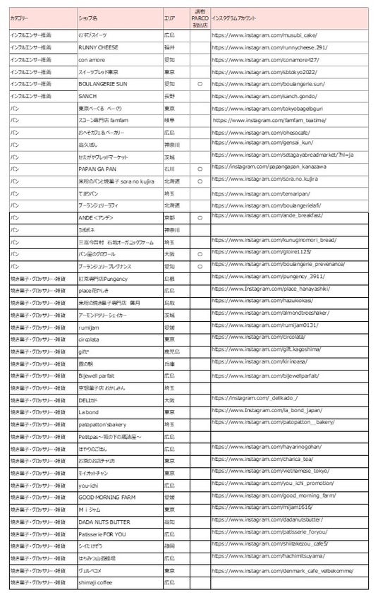 全国各地からパパパパンっと調布PARCOに大集合!調布PARCO参加ショップ一覧 ※5月16日時点