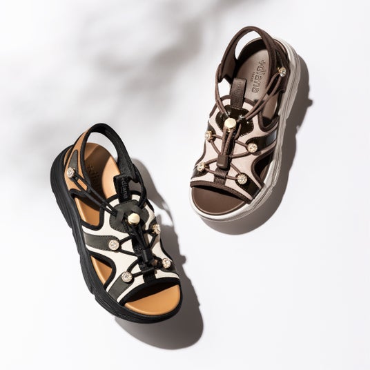 昨年即完売の大人気軽量スポーツサンダルが今季も登場!足裏の形状に合わせてなだらかに起伏のついたフットベットと、足あたりの良いネオプレン生地のアッパーで、包み込まれるようなフィット感。驚くほど軽量で、やみつきになる快適な履き心地。ビジューパーツで女性らしさもプラスされた、フェミニンコーデにも合わせやすいスポーツサンダルです。