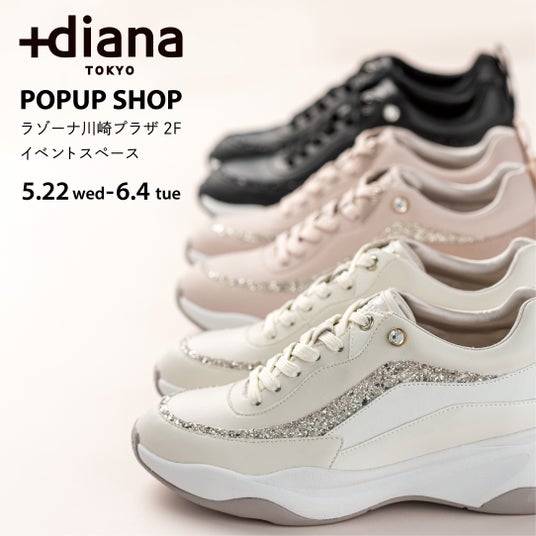 ダイアナ株式会社(本社:東京都渋谷区神宮前)が展開する大人スニーカーブランド「プラスダイアナ」よりPOPUP SHOP開催のご案内です。2024年5月22日(水)~6月4日(火)の期間限定で、ラゾーナ川崎プラザにて、ポップアップショップを開催いたします。プラスダイアナの人気サンダルの新色をポップアップショップ先行販売として数量限定でご用意しております。また、ブランドイメージに合わせた、大人フェミニンな店装でブランドの世界観を表現しております。ぜひお立ち寄りください。