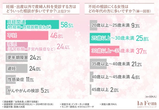 ・産婦人科にかかる女性の相談は妊娠・出産以外では「月経関連」がトップに