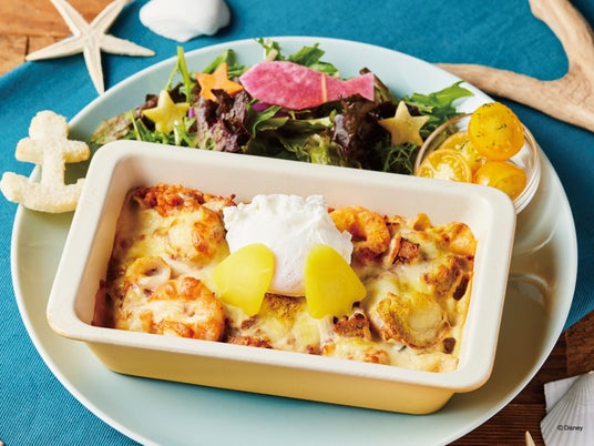 当店のメニューは全て、「4 STEPS for the FUTURE」をテーマに、「どのような素材を、どのように選び、どのように提案し、どのような体験を通じて提供するか」にこだわり、信頼がおける食材を、カロリー・塩分・脂質などに配慮した調理法でご提供いたします。メニューには、ミッキーマウスやミニーマウスをはじめとするキャラクターの世界観やストーリーを反映し、大人も子供もお楽しみいただけるデザインを施しています。「おいしさ」と、ディズニーの世界観を通じた「楽しさ」を掛け合わせた食体験をご提案いたします。これらのスペシャルメニューをはじめ、当店のメニューは全て、ディズニーが提唱する「カロリー600kcal以下」「塩分2.5g以下」「脂質30%以下(カロリーに対して)」「トランス脂肪酸0」など、バランスの良い栄養成分に関する基準を満たしたヘルシーな商品をご提供しています。