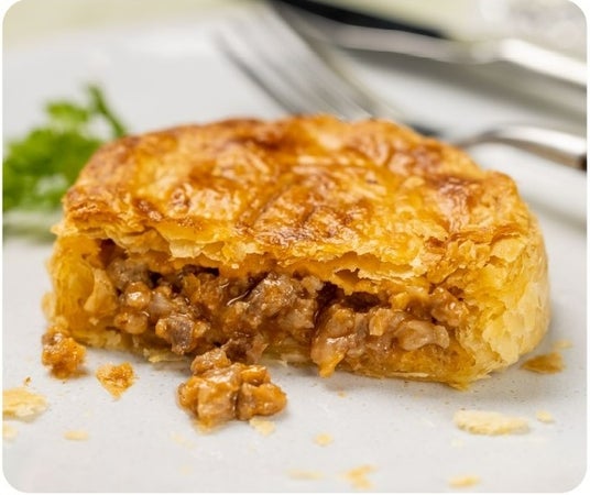 熊本県のブランド牛“あか牛”を贅沢に使った、パイの本場オーストラリア仕込みの本格ミートパイ。料理専門誌主催の品評会『料理王国100選2022』に認定された味をご賞味ください。