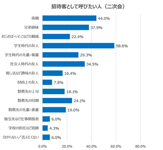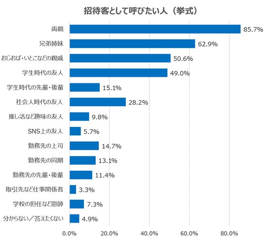 ・セレモニーに呼びたいのは「両親」「兄弟姉妹」「学生時代の友人」、会社関係は“呼びたくない”?
