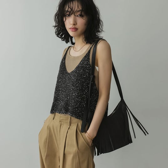 レースやシアー、きらきら素材のキャミやベストを重ねる最旬レイヤードスタイルもお楽しみください。