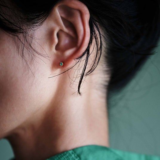 “WISH” リングに付属されているダイヤモンドチャームより着想を得たミニマルなフォルムのピアスは、12種類の誕生石に合わせたカラーストーンでご用意いたしました。