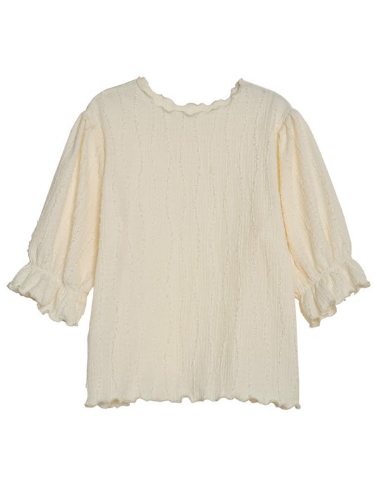 商品名:フリンジカットジャガードキャンディースリーブトップス