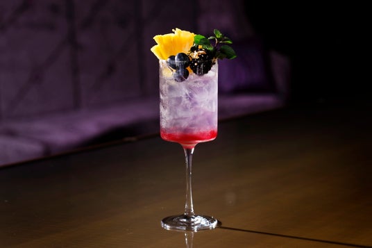 Cherry Liqueur, Framboise Liqueur, Cranberry Juice, Cider, Ice Cream and Fresh Seasonal Fruits Cocktail “Ginza1902 Daisy”