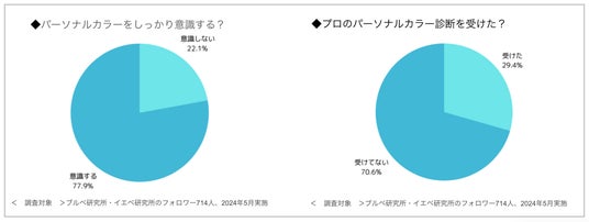 普段ファッションアイテムを購入する際、パーソナルカラーをしっかり意識する人は、77%もいます。そしてプロのパーソナルカラー診断を受けた人は、29.4%と約3割へ。直近、パーソナルカラーに対する意識は向上し続けています。