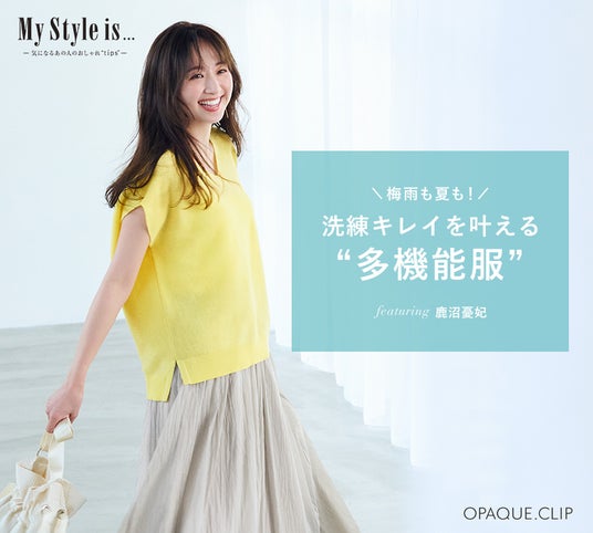 オペーク ドット クリップが展開する定期配信中のオリジナルWEBマガジン“My style is…”では、ブランドが提案するアイテムを華やかに彩るイメージモデルを起用し、おすすめのコーディネートやアイテムをご紹介しています。