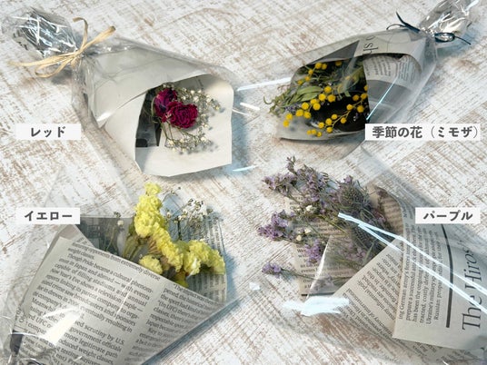 ■届いてすぐに飾ることができる「ドライフラワー ミニブーケ」のセットも販売