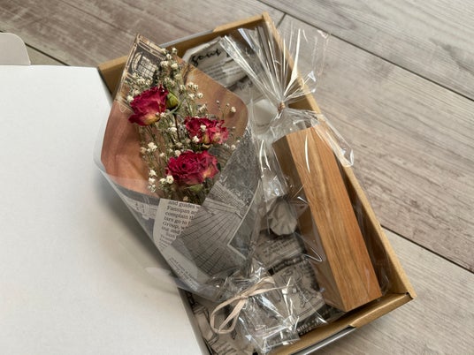 オンラインサイトでは、届いてすぐに飾ることができる「ドライフラワーミニブーケ」とのセット販売も行います。ドライフラワーは、名古屋のドライフラワーショップ「ドライフラワーと暮らしのお店 その灯ぐらし」さんにご製作いただいたきました。『MOKURIN』に飾った際に美しく見えるよう、2~3種類の花を使った高さ20cm程の小さなブーケです。