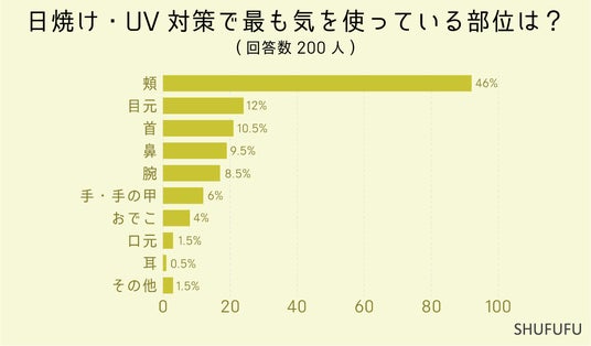 女性200人に「日焼け・UV対策」に関するアンケート調査を行った所、